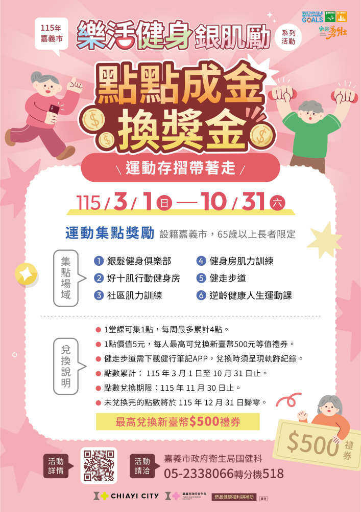 長者隨著年齡增長,肌肉力量每年會減少3%至5%,肌力減少會影響行動能力和生活品質,透過適當的運動對提升長者的肌力、減緩老化至關重要。為了鼓勵長者養成規律運動及增加肌力預防肌少症,讓運動成為生活的一部分,並實現自主化、日常化、普及化及全齡化的目標,本局以「樂活健身銀肌勵」計畫,提升銀髮族的運動參與度。方案包括:銀髮健身俱樂部、科技行動健身房、社區肌力訓練、逆齡健康人生計畫、健走等多元運動場域,並以集...